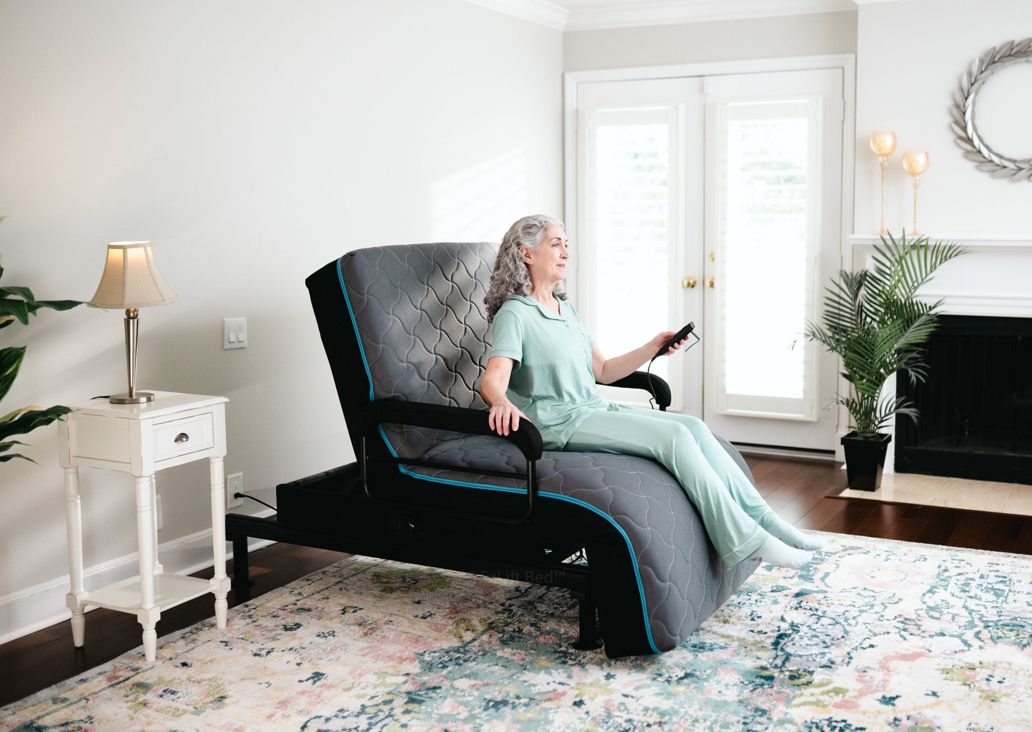 Transform your EZLift Bed™ into a comfortable chair with just the push of a button. This position eliminates the need for additional seating in your room and provides an easy way to sit comfortably while dressing or preparing to stand. It’s a simple solution for enhanced mobility and independence.