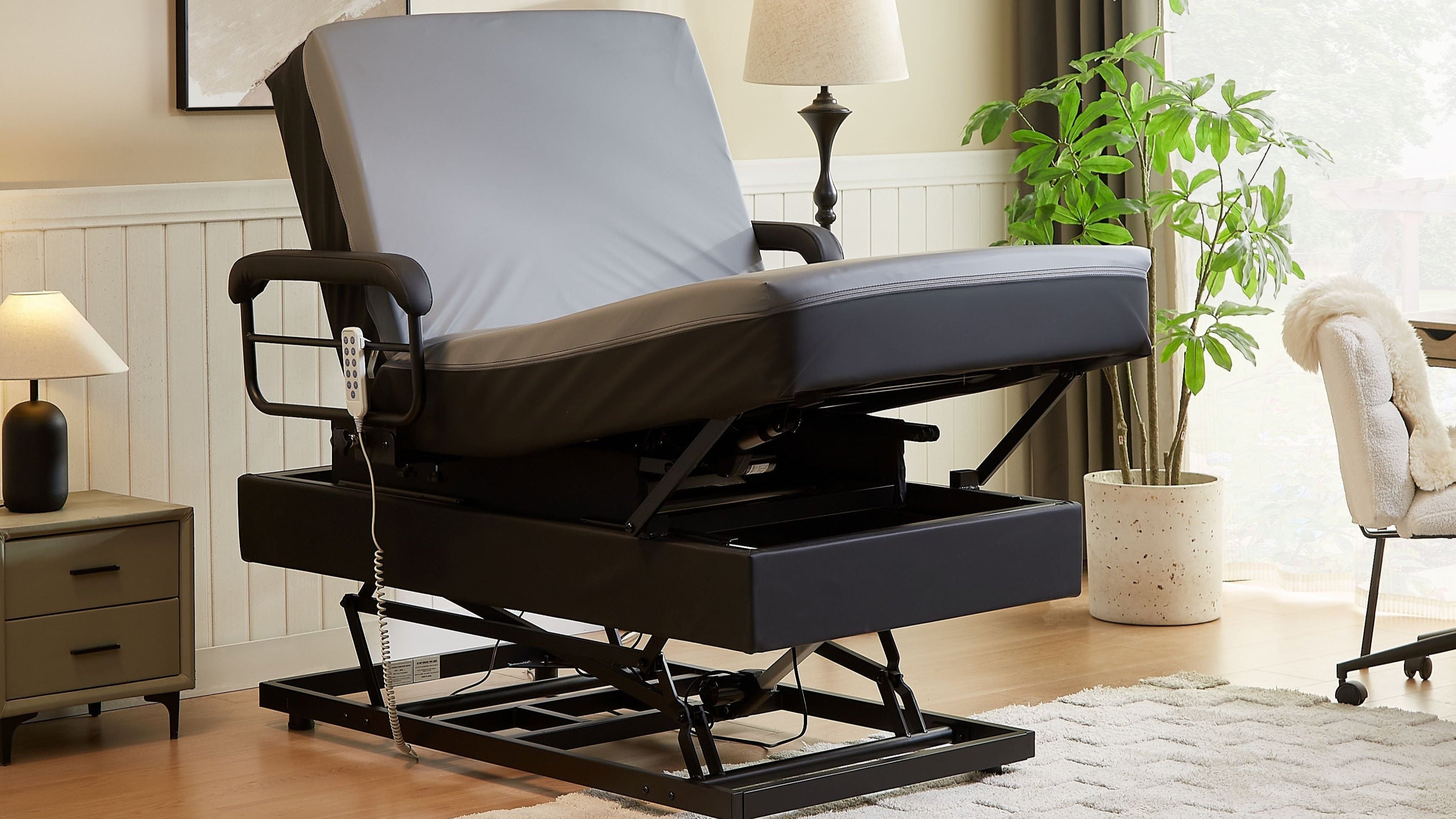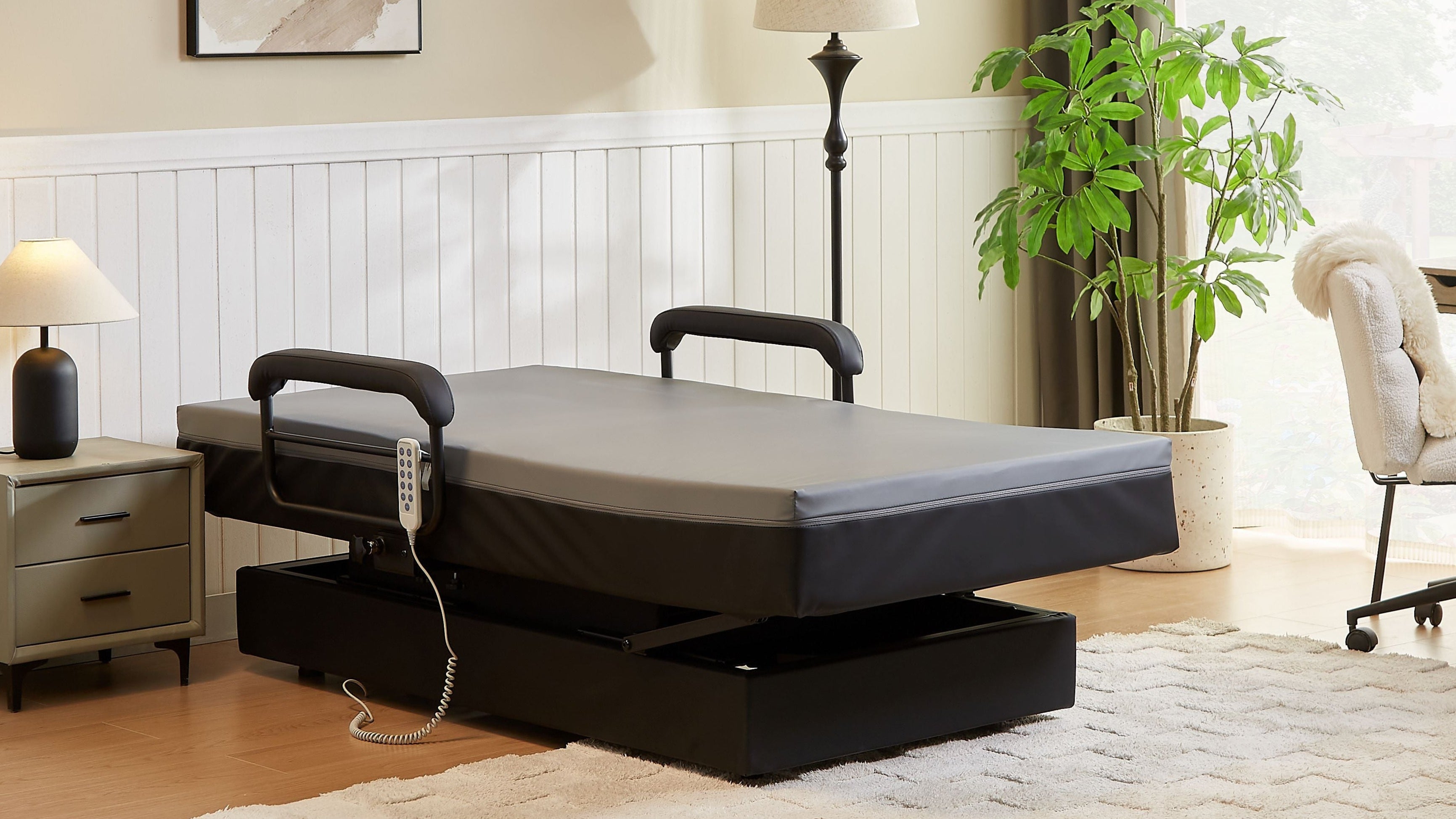 The EZLift Bed - Hi-Lo Pro™ combines hospital-grade functionality with the comfort and aesthetics of a premium adjustable bed. Designed to meet the needs of users requiring advanced mobility support, this bed features Hi-Lo height adjustment, independent knee and foot raise functions, and a unique stand-up assist system—providing unparalleled accessibility, safety, and relaxation.