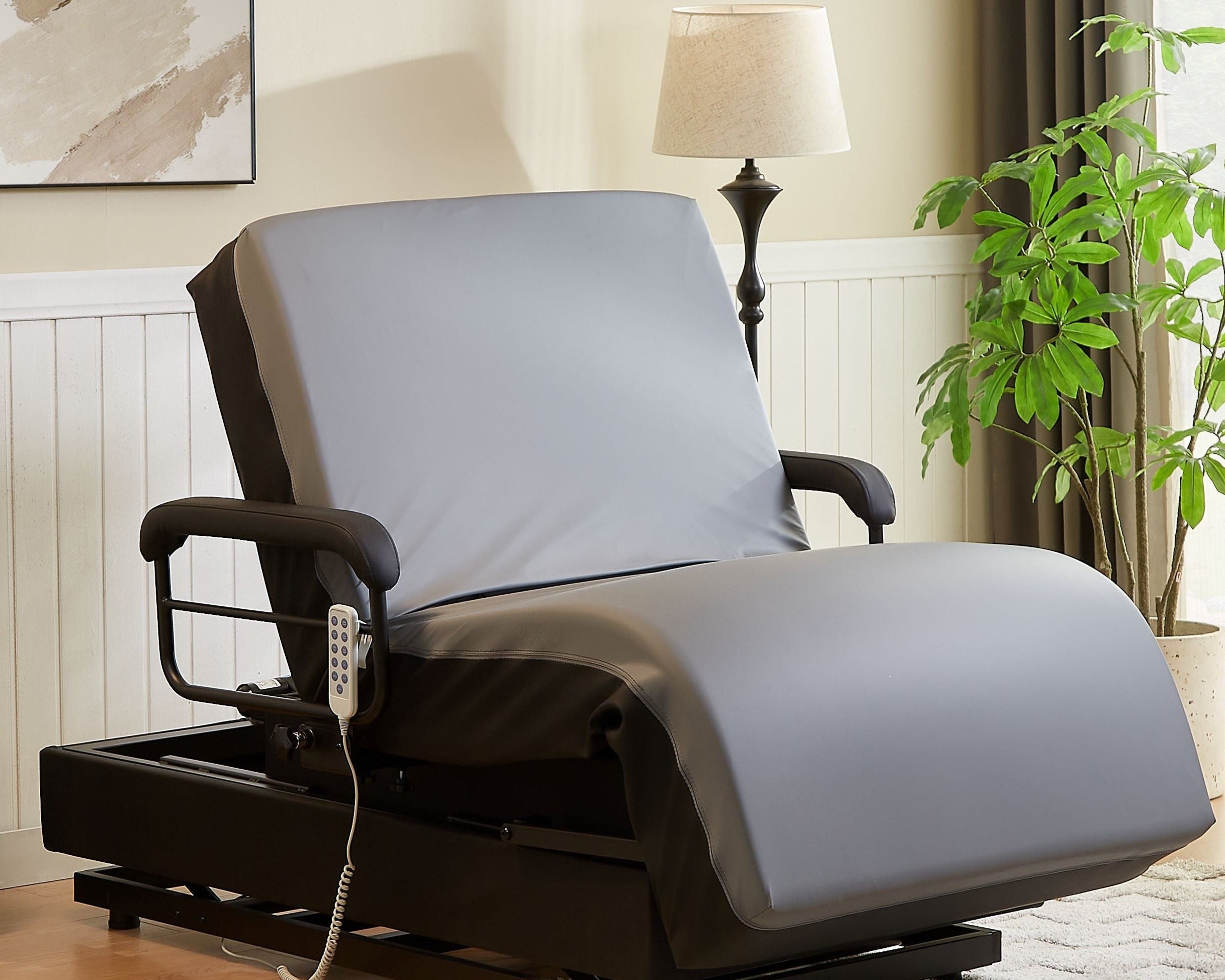 Easily transition between lying, sitting, and standing with smooth motorized adjustments.