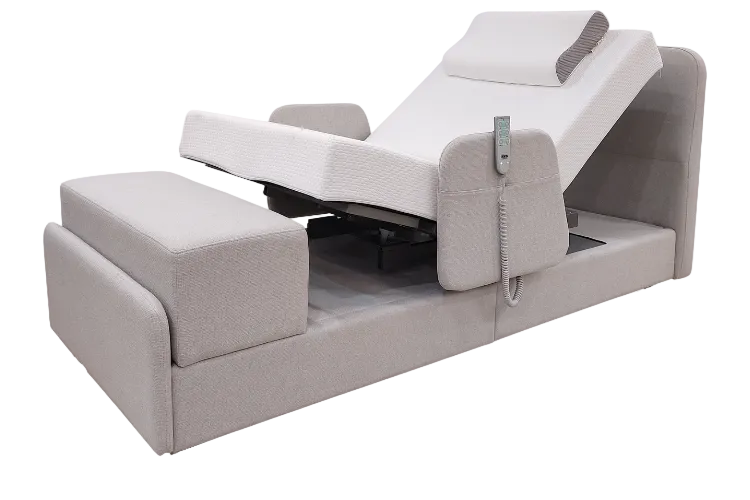- check Crafted for users 4'9"–5'11", integrating premium upholstery, a luxurious memory foam mattress, whisper-quiet motors, and aesthetics designed to blend into residential environments.