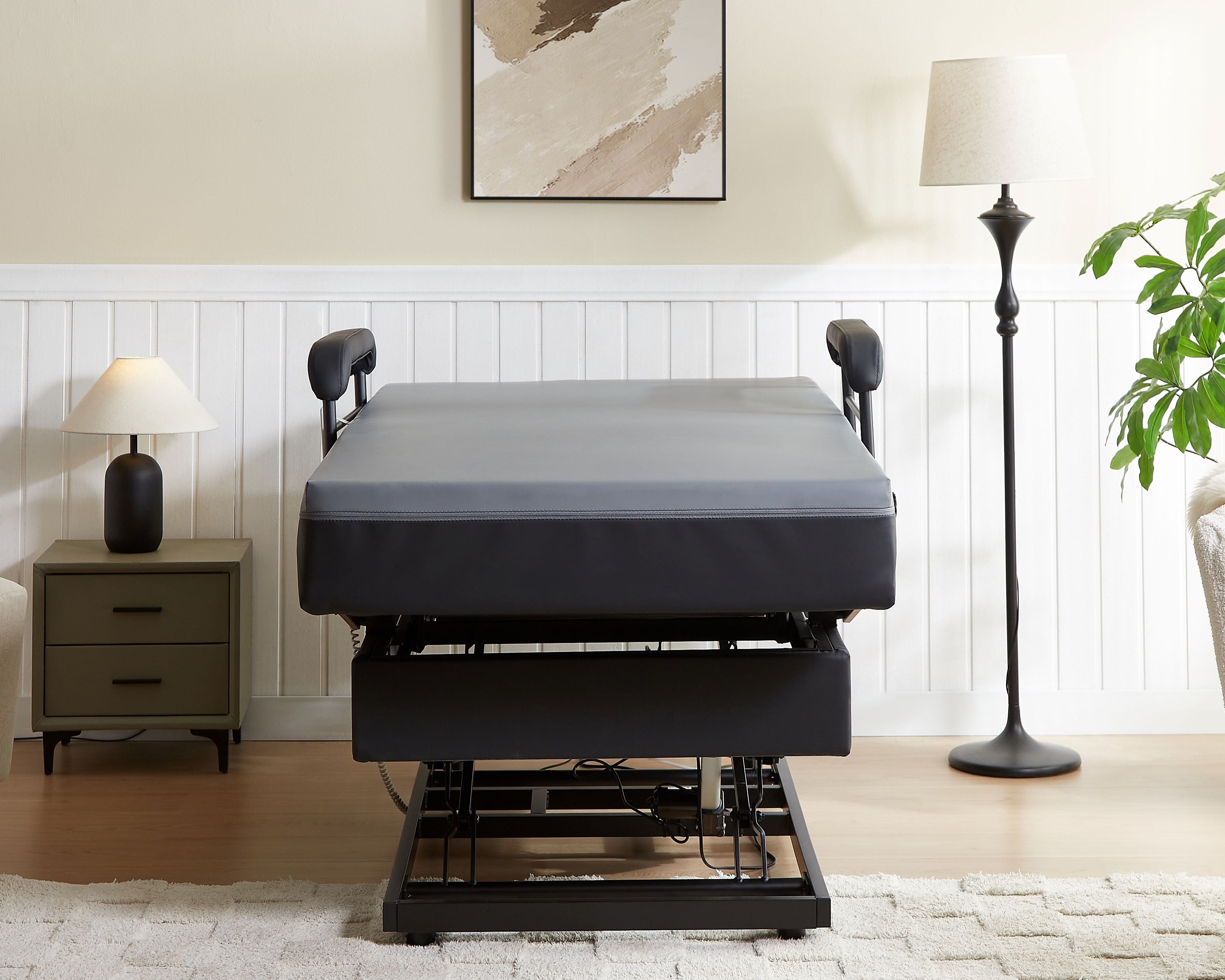 The EZLift Bed - Hi-Lo Pro™ combines hospital-grade functionality with the comfort and aesthetics of a premium adjustable bed. Designed to meet the needs of users requiring advanced mobility support, this bed features Hi-Lo height adjustment, independent knee and foot raise functions, and a unique stand-up assist system—providing unparalleled accessibility, safety, and relaxation.